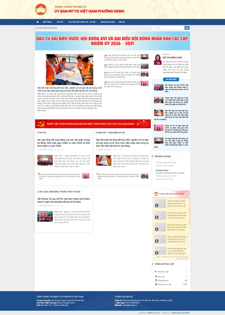 Cổng thông tin điện tử Mặt trận Tổ quốc và các tổ chức chính trị – xã hội (Mẫu 2) là hệ thống thông tin chính thức trên môi trường mạng, được xây dựng nhằm phục vụ công tác chỉ đạo, điều hành, cung cấp thông tin, tuyên truyền và tăng cường tương tác giữa cơ quan với tổ chức, cá nhân.